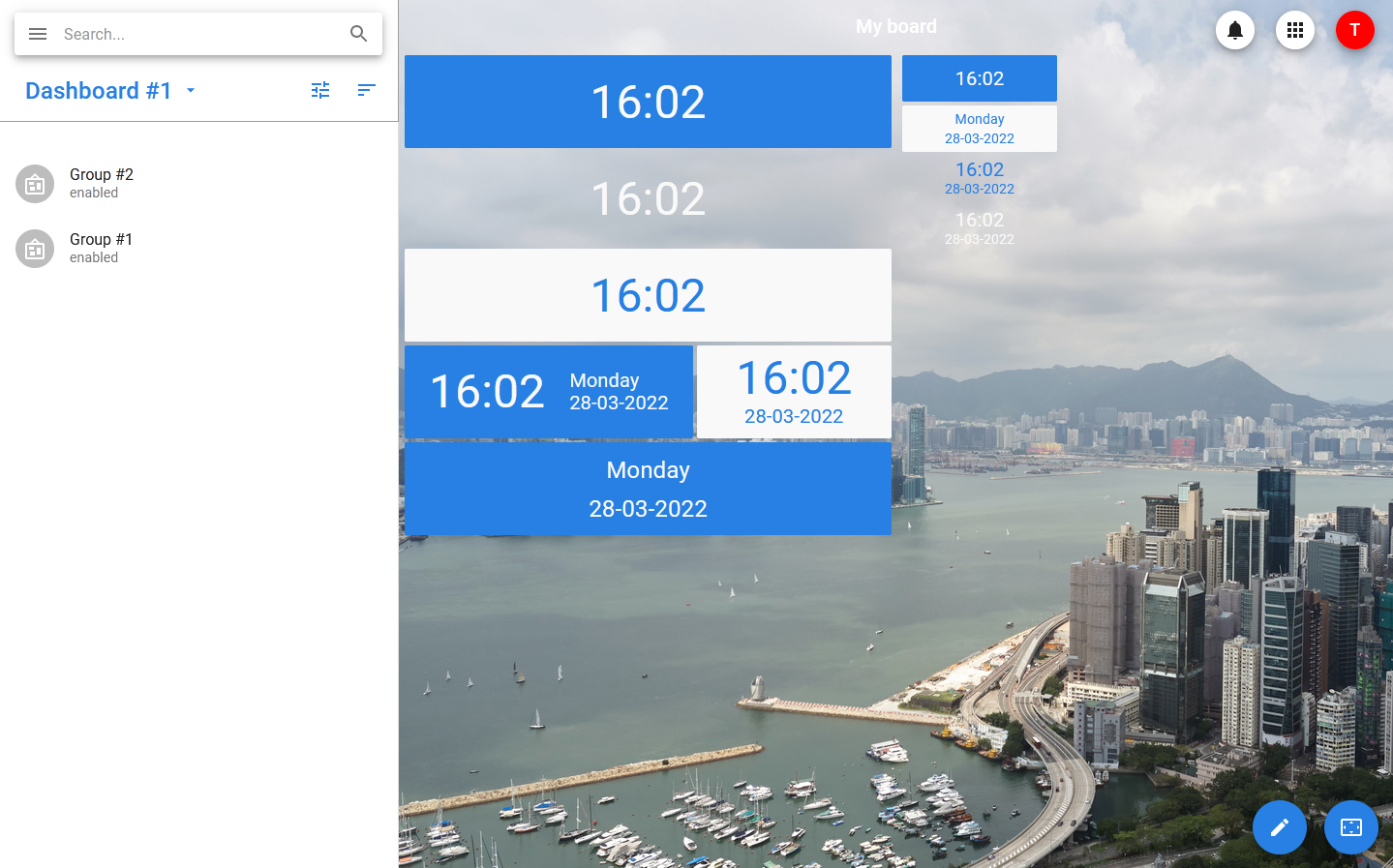 For this widget, you can configure the theme and size, as well as the format for displaying the date and time: it can display only the date, only the time, date and time with or without the day of the week.